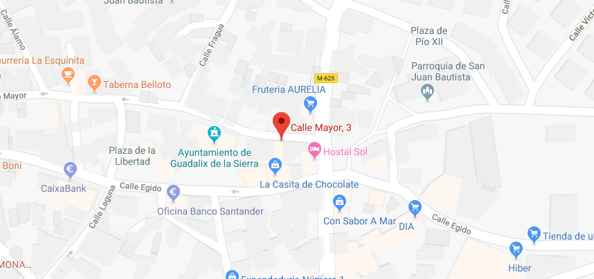 Nos encontramos en la Calle Mayor, 3, en Guadalix de la Sierra. Para la recogida de llaves es necesario avisar previamente al numero de teléfono proporcionado. Horario de 8:00 a 21:00, de lunes a domingo.